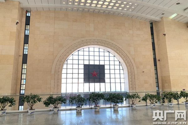 新的延安車站站房正面以窯洞圖案展示了濃郁的陜北特色,候車室高高懸掛的五角紅星象征著延安精神。從高空俯視,面積達4萬多平方米,采用最先進予應(yīng)力空間結(jié)構(gòu)體系、虹吸式排水系統(tǒng)的無柱鋼結(jié)構(gòu)風(fēng)雨棚,象征著延安在新時代振翅高飛、蓬勃發(fā)展。