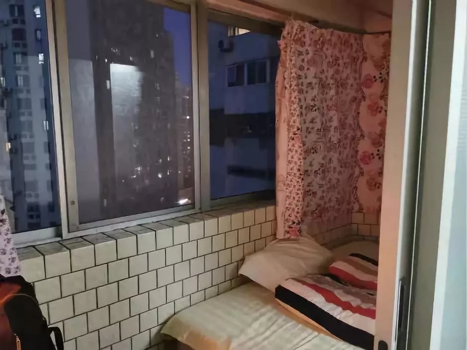 10月末的一晚,最低溫度5攝氏度。當(dāng)記者推開預(yù)訂好的“經(jīng)濟間”房門時,發(fā)現(xiàn)居然是個陽臺。房間內(nèi),床和小桌子緊貼兩側(cè)墻壁放置,中間僅有一人站立的空間,天花板上還掛著晾衣桿,陽臺和客廳間的門無法上鎖。