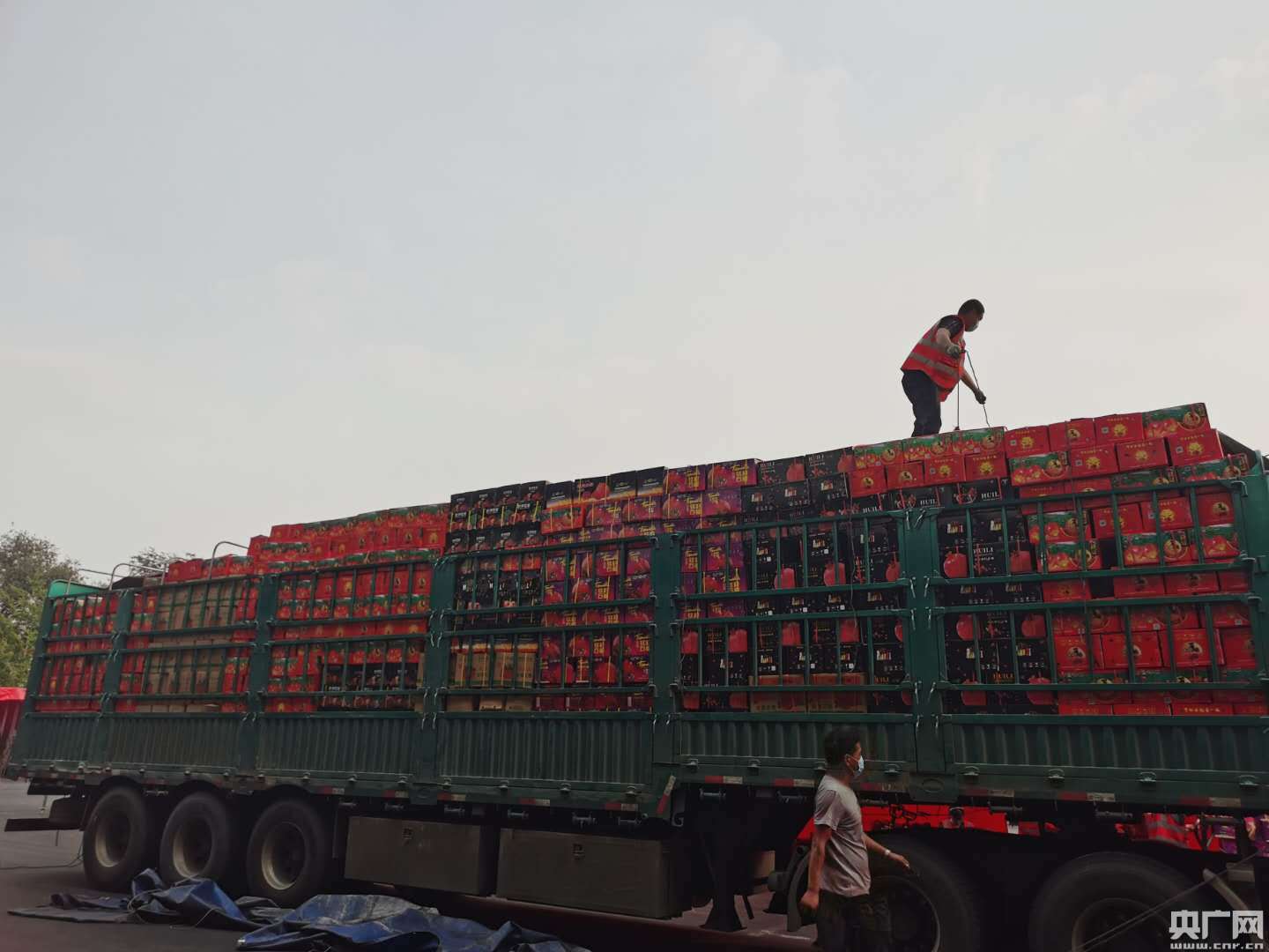 。▉碜运拇錾綍砜h的貨車上,新發(fā)地員工正在卸車。實習記者王紅霞 攝。)