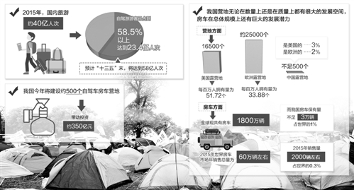 2015年7月,國務(wù)院審議通過的《關(guān)于進一步促進旅游投資和消費的若干意見》提出,制定全國自駕車房車營地建設(shè)規(guī)劃和自駕車房車營地建設(shè)標準,明確營地住宿登記、安全救援等政策,到2020年,鼓勵引導(dǎo)社會資本建設(shè)自駕車房車營地1000個左右。
