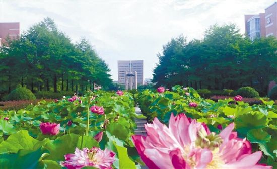 校園微電影里總是有特別的小清新鏡頭,林蔭小道、柳樹飄揚、湖邊長椅。這兩天,不少同學(xué)的微信朋友圈、微博被一組“校園里的夏荷”圖片刷屏了。圖片拍攝的是杭州電子科技大學(xué)的校園風(fēng)景,每張都有荷花,將校園風(fēng)景和荷花相結(jié)合,顯得陽光艷麗。