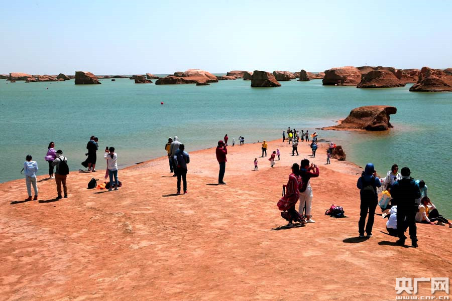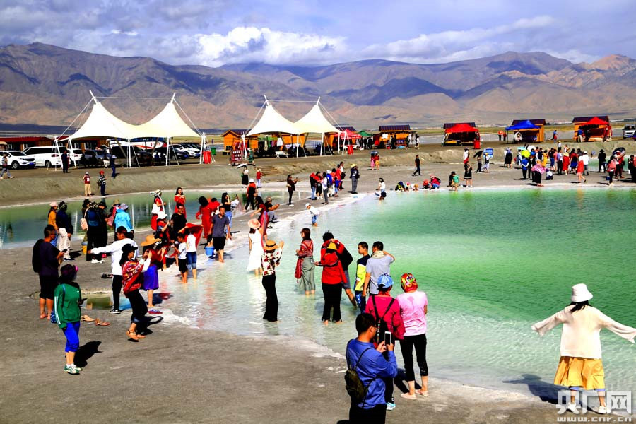 大柴旦翡翠湖游人如織(央廣網記者 張雷 攝)
