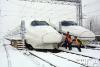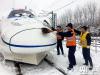 2018年1月4日,中國(guó)鐵路上海局集團(tuán)公司合肥南動(dòng)車運(yùn)用所內(nèi),職工正在為即將上線運(yùn)行的動(dòng)車組進(jìn)行掃雪除冰。(央廣網(wǎng)發(fā) 謝冰飛攝) -