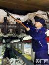 2018年1月4日 中國(guó)鐵路北京局集團(tuán)公司北京動(dòng)車段,職工正在進(jìn)行動(dòng)車組列車底部的掃雪除冰作用。(央廣網(wǎng)發(fā) 高悅攝) -