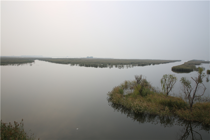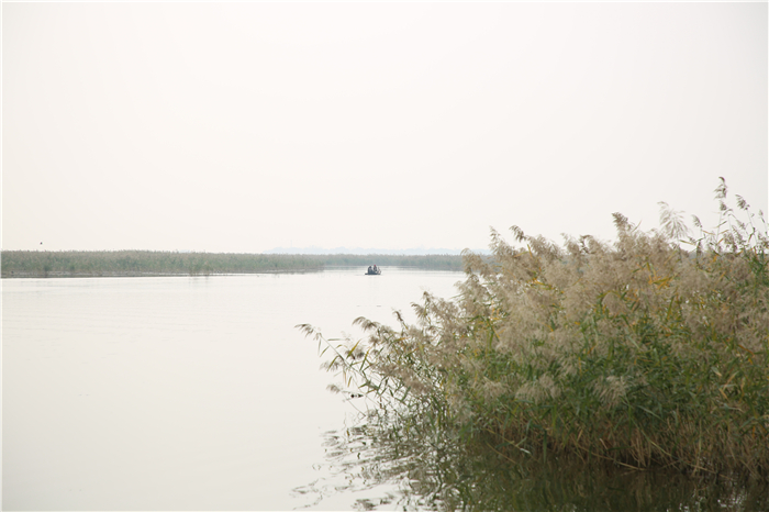 站在船上遠(yuǎn)眺,一層薄霧籠罩著碧綠的湖面,水光瀲滟、蘆葦搖曳,魚兒相逐、群鳥翩躚,幾只白鷺撲棱著潔白的翅膀,悠然地飛向蔚藍(lán)的天際。天水相接之處,幾座蒼翠的小山點(diǎn)綴其間!罢娴奶珘延^了,跟海一樣,一眼望不到邊。”站在船頭,采訪團(tuán)記者們?nèi)滩蛔「袊@,紛紛拿出相機(jī)、手機(jī)拍照留念。