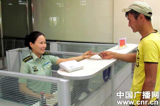 中廣網(wǎng)呼和浩特5月9日消息(記者陳青平 通訊員樊曉東 寇學(xué)龍)大多出入內(nèi)蒙古策克邊境口岸的中外旅客都對(duì)一名笑容甜美的女檢查員有著很深的印象。她業(yè)務(wù)素質(zhì)過硬,多次查獲違法違規(guī)人員,她待人親切,時(shí)刻溫暖著出入境旅客的心。她就是策克邊防檢查站執(zhí)勤業(yè)務(wù)科檢查員魏瑪娜,一位美麗善良的蒙古族姑娘。