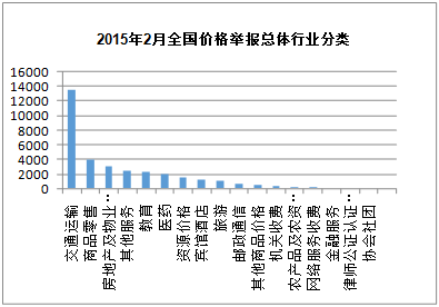 圖1 2015年2月全國價(jià)格舉報(bào)總體行業(yè)分類