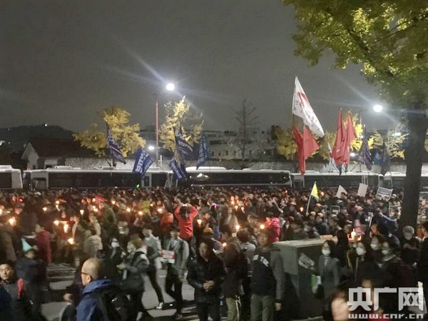 大約一個(gè)小時(shí)前,北京時(shí)間今天(12號(hào))下午5點(diǎn)開始,由韓國1500多個(gè)公民團(tuán)體組織要求樸槿惠下臺(tái)的游行以及燭光集會(huì)再次舉行。目前,示威者們采取“隔空包圍總統(tǒng)府青瓦臺(tái)”的形式,預(yù)計(jì)集會(huì)將持續(xù)到明天。