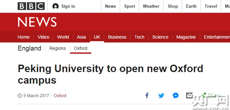 圖為英國(guó)BBC報(bào)道:北京大學(xué)開設(shè)牛津新校區(qū)