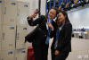 在“一帶一路”國(guó)際合作高峰論壇新聞中心內(nèi),兩名記者擁抱告別。(央廣網(wǎng)記者 韓靖 攝) -
