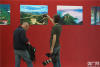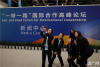 在“一帶一路”國(guó)際合作高峰論壇展廳內(nèi),兩名記者在拍照留念。(央廣網(wǎng)記者 王永康 攝) -