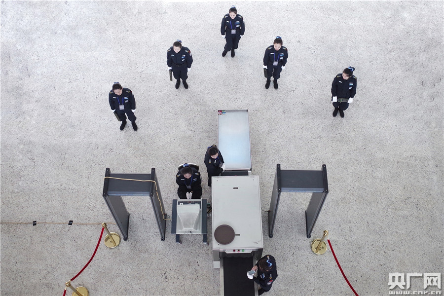 論壇臨近結(jié)束,安檢人員堅(jiān)守在工作崗位上。(央廣網(wǎng)記者 王永康 攝) -