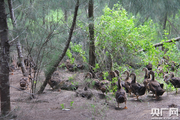 馬裊海鴨養(yǎng)殖基地,位于臨高縣博厚鎮(zhèn)道灶村沿海一帶。這里有大面積的紅樹(shù)林、海溪水交錯(cuò)的河流及淺灘;每當(dāng)海潮退去,大量的海蟹、魚蝦和貝類會(huì)寄居在這些沿海植被上,成為海鴨的天然食糧。因此,該地生長(zhǎng)的海鴨毛色好、肉質(zhì)鮮,頗有名氣。