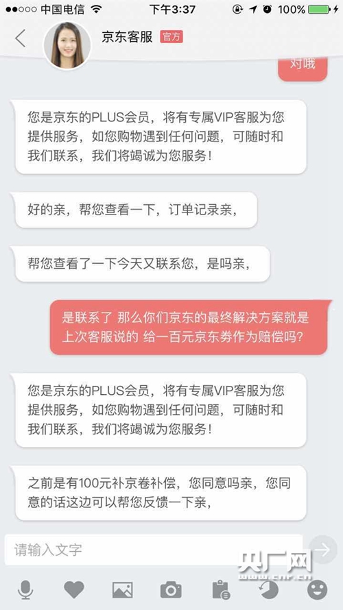 “京東承諾假一賠十,現(xiàn)在開始忽悠人了。”當(dāng)事人馮先生向記者透露,獲悉京東給出最終方案后,他便決定只身赴京,委托北京的專業(yè)律師向京東討個(gè)說法。