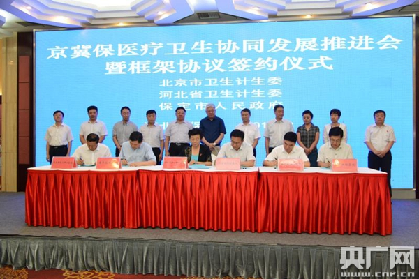 央廣網(wǎng)北京8月25日消息(記者孫冰潔)今日(25日),北京市衛(wèi)生計(jì)生委、河北省衛(wèi)生計(jì)生委與保定市政府共同簽訂《醫(yī)療衛(wèi)生協(xié)同發(fā)展框架協(xié)議》,北京市5家市屬醫(yī)療機(jī)構(gòu)也分別和保定市5家醫(yī)療機(jī)構(gòu)同時(shí)簽訂了醫(yī)療合作協(xié)議,京冀醫(yī)療衛(wèi)生協(xié)同發(fā)展正式起航。