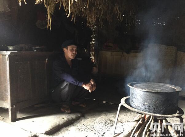 順著山路走大約1個(gè)小時(shí),門大爺家就建在顯眼的半山腰處。從他祖輩開始在此安家落戶,已經(jīng)過(guò)去了200多年。房子是地區(qū)典型的“千腳落地樓”:籬笆圍墻、木板為門、茅草做頂、千腳樹枝落地支撐,一層養(yǎng)了3頭豬和3只雞;二層是老兩口的“臥室”和“廚房”。