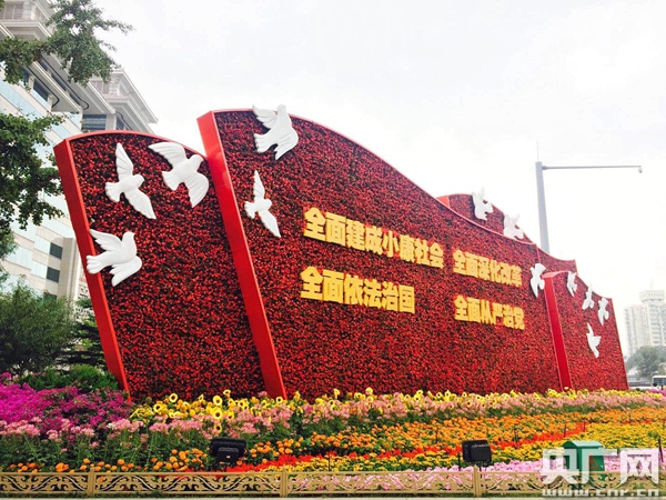 西單東南角“四個全面”花壇 張佳琪 攝
