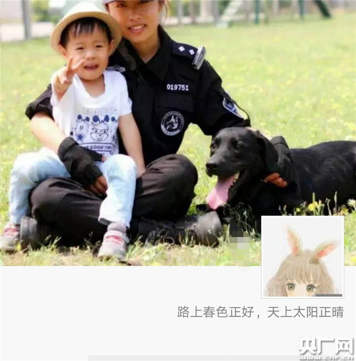 轉(zhuǎn)眼間,“兩個(gè)孩子”都6歲了,隊(duì)里的“孩子”已經(jīng)成為一條經(jīng)驗(yàn)豐富的警犬,家里的孩子也要上小學(xué)。在張靈朋友圈封面上,記者看到一張她穿著鐵警制服和兒子還有小黑一起照的合照,“我很喜歡這張照片,這也是我生活的全部重心!彼嬖V記者。