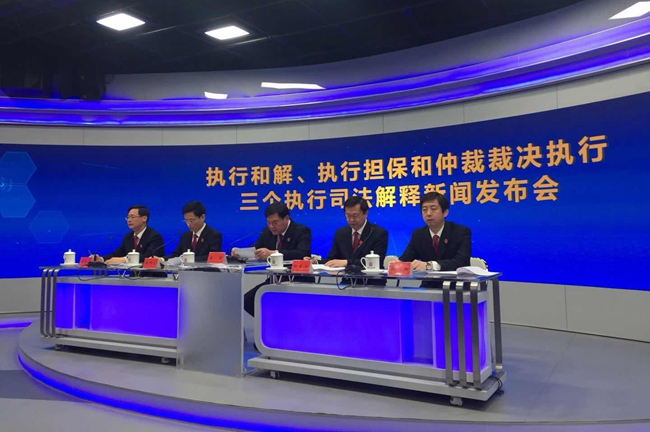 央廣網(wǎng)北京2月23日消息(記者孫瑩 高藝寧) 23日,最高人民法院發(fā)布《關(guān)于執(zhí)行和解若干問(wèn)題的規(guī)定》(以下簡(jiǎn)稱《執(zhí)行和解規(guī)定》)、《關(guān)于執(zhí)行擔(dān)保若干問(wèn)題的規(guī)定》(以下簡(jiǎn)稱《執(zhí)行擔(dān)保規(guī)定》)和《關(guān)于人民法院辦理仲裁裁決執(zhí)行案件若干問(wèn)題的規(guī)定》(以下簡(jiǎn)稱《仲裁裁決執(zhí)行規(guī)定》)三項(xiàng)司法解釋。記者在發(fā)布會(huì)現(xiàn)場(chǎng)了解到,這三項(xiàng)司法解釋作為執(zhí)行規(guī)范體系的重要組成部分,將于2018年3月1日開(kāi)始施行。