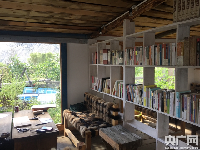 7月30日,位于客棧內(nèi)的書吧一角。(央廣記者 孫冰潔 攝)