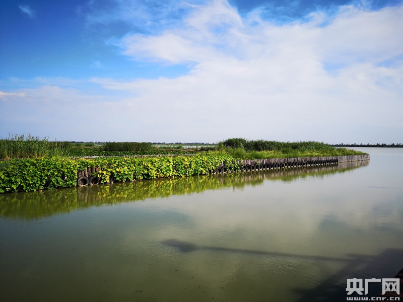 21日,采訪團來到天津七里河當天,晴空萬里,碧波粼粼。(央廣網(wǎng)記者 梁爽 攝)
