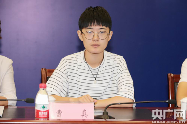 曹真在“我來(lái)北京上大學(xué)”殘疾大學(xué)生座談會(huì)上。(央廣網(wǎng)記者王晶 攝)