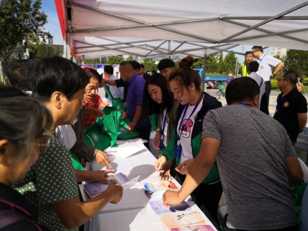 9月17日上午,在北京房山區(qū)府前廣場,區(qū)民政局工作人員向居民發(fā)放民政普法宣傳手冊。(北京市民政綜合執(zhí)法監(jiān)察大隊(duì)供圖)