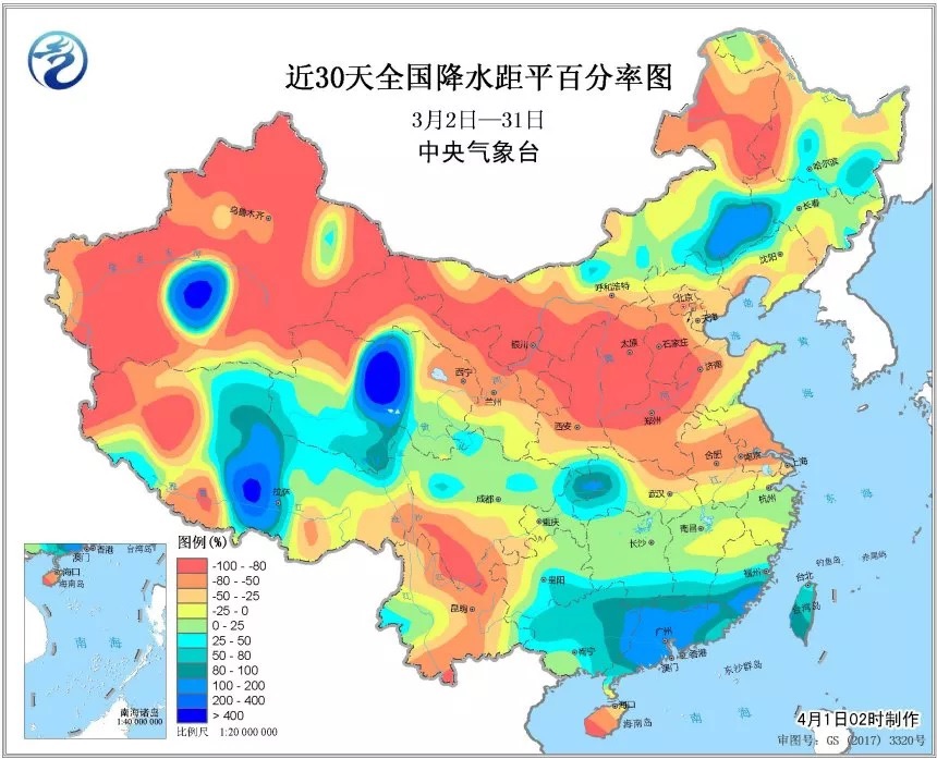 3月以來,華北、黃淮及內(nèi)蒙古東北部、黑龍江西部、四川南部、云南北部等地降水量較常年同期偏少8成以上(來源:中央氣象臺)