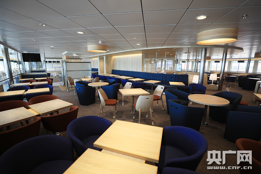 雙燃料高速豪華客滾船2號(hào)船內(nèi)景。(央廣網(wǎng)記者石昊鑫攝)