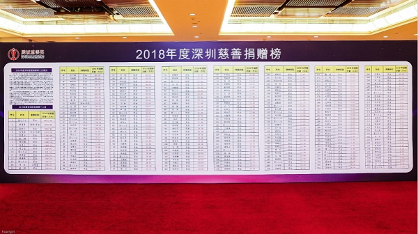 2018年度深圳慈善捐贈榜部分榜單(央廣網(wǎng)記者 黃倩 攝)