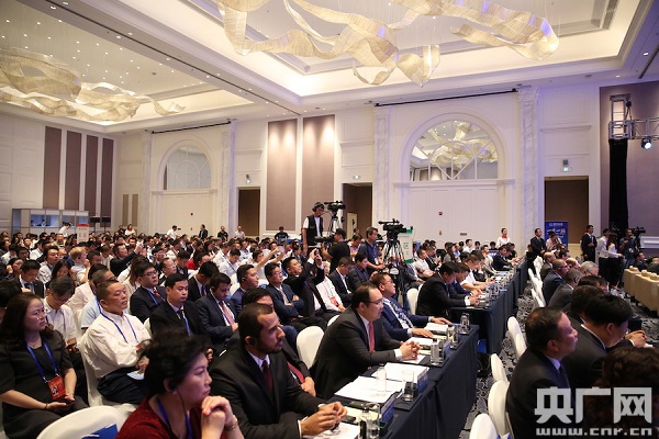 出席會(huì)議的中方代表在會(huì)上致辭(中央廣播電視總臺(tái)央廣記者 王新宇 攝)