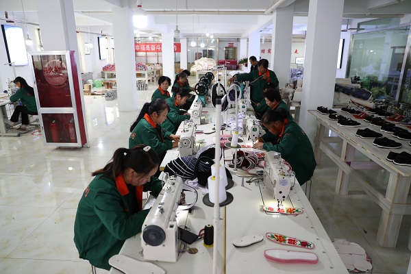 缐全紅所在的“扶貧車(chē)間”是臨夏縣為拓寬貧困群眾增收渠道的一項(xiàng)舉措,目的就是為了讓農(nóng)村留守婦女、尚有勞動(dòng)力的老人能夠在家門(mén)口就近就業(yè)。2018年,臨夏縣精準(zhǔn)扶貧布鞋加工培訓(xùn)基地對(duì)自愿從事布鞋加工的1996名貧困群眾免費(fèi)提供加工技能培訓(xùn),培養(yǎng)發(fā)展了一批布鞋加工能手。
