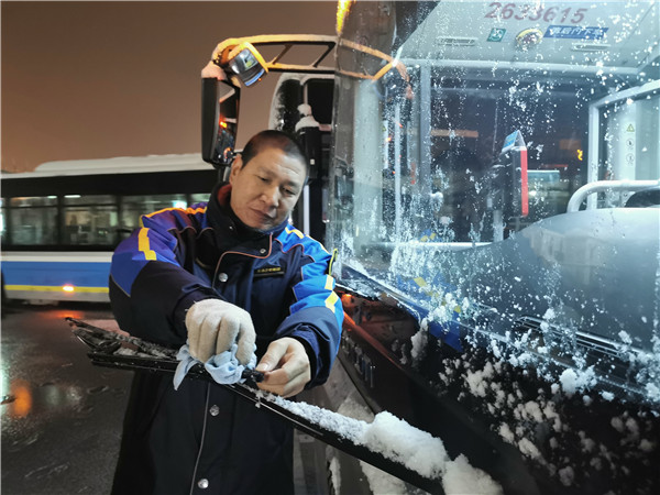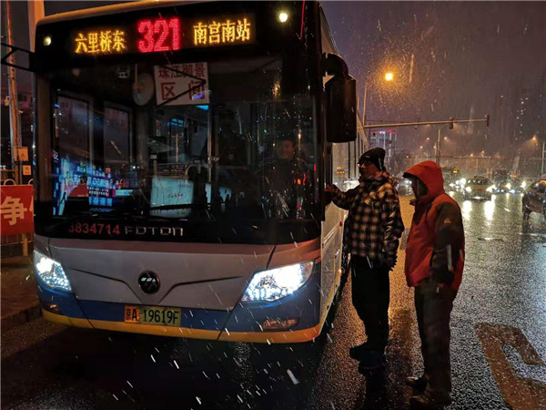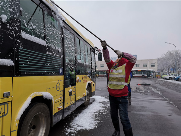 降雪期間,途經(jīng)三大火車站周邊的公交線路也增加了平峰時段運力,縮短發(fā)車間隔,方便乘客周末出行。同時,公交在四惠、宋家莊、動物園、北京西站、北京南站等公交樞紐,司乘人員做好場站融雪除冰工作,提前開啟車輛暖風。在途經(jīng)醫(yī)院、公園較多的公交線路上,司乘人員還在上下車門做好重點照顧,方便老人上下車。