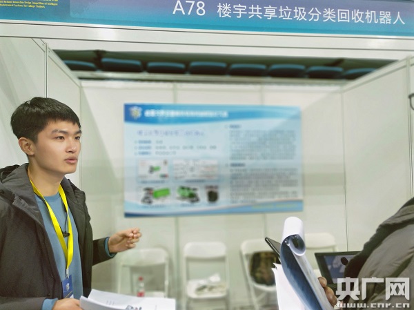 樓宇共享垃圾分類回收機器人是來自中國農(nóng)業(yè)大學(xué)張自超團(tuán)隊的此次參賽作品!爱a(chǎn)品要立足實際用處,才能有更多意義!彼榻B,在產(chǎn)品的前期設(shè)計中,團(tuán)隊探討了不少方案,最終在今年年初確定了垃圾分類回收的方向,目前已在學(xué)校進(jìn)行了實驗使用!渡虾J猩罾芾項l例》實施后,張自超團(tuán)隊更對項目充滿信心:“我們的方向?qū)α,很興奮!