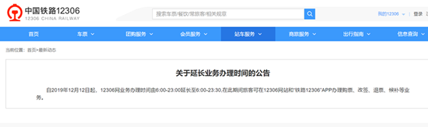 最新消息!12306網(wǎng)購火車票業(yè)務辦理時間延長