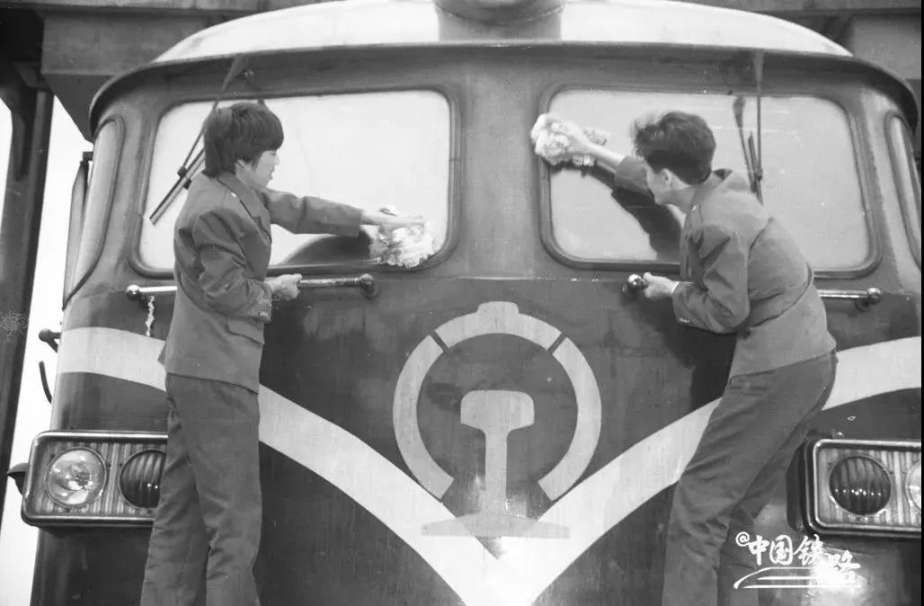 上世紀(jì)90年代,機(jī)務(wù)段乘務(wù)員下班前擦拭東風(fēng)4型內(nèi)燃機(jī)車(中國鐵路供圖)