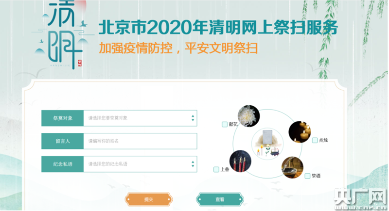 3、網(wǎng)上祭掃。登錄“首都之窗”“北京市民政局”及各區(qū)人民政府官方網(wǎng)站,點(diǎn)擊“2020年清明節(jié)網(wǎng)上祭掃服務(wù)”進(jìn)行網(wǎng)上祭掃。