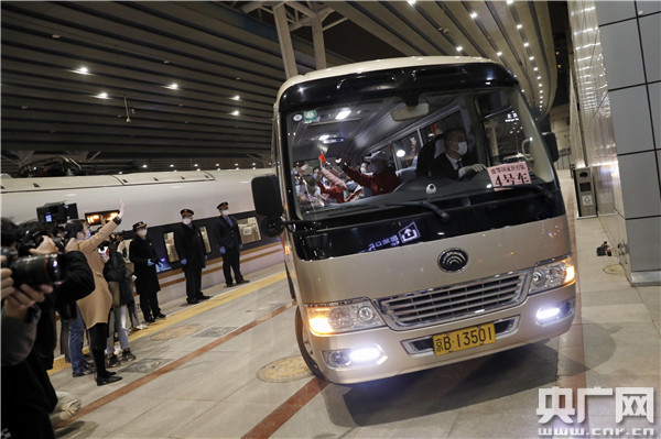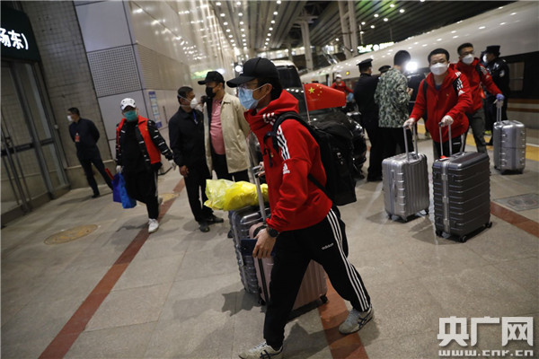 央廣網(wǎng)北京3月26日消息(記者王晶 張凱航 李帥)“你們辛苦了!歡迎回家!”昨天(25日)21時10分,由中國鐵路北京局集團有限公司北京客運段值乘的G68次列車緩緩開進北京西站。在抵京的人群中,有一群特殊的旅客,他們是來自北京中醫(yī)藥大學(xué)東直門醫(yī)院、東方醫(yī)院和中國醫(yī)學(xué)科學(xué)院檢測隊的援助湖北醫(yī)療隊隊員,共計60余人。