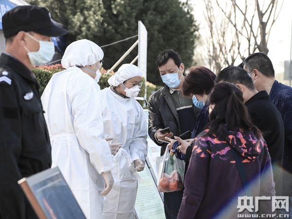 祭掃的市民通過(guò)二維碼認(rèn)證后,方可進(jìn)入園區(qū)(央廣網(wǎng)記者 張佳琪 攝)