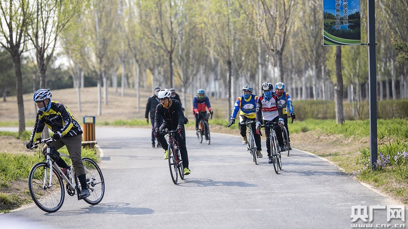 從事騎行活動的北京市民(央廣網(wǎng)記者 張佳琪 攝)