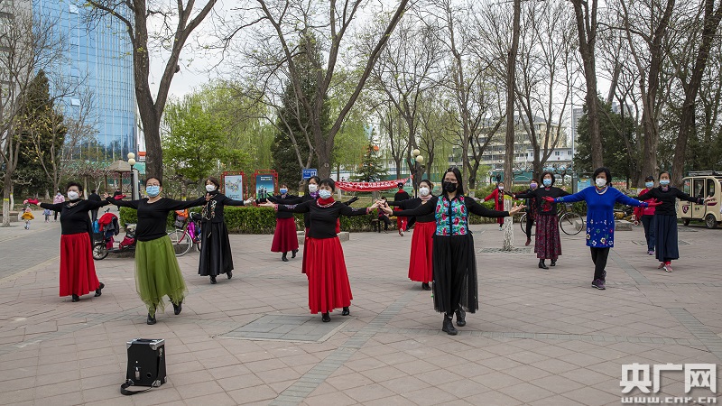 喜愛跳舞的市民運動時也戴起了口罩(央廣網(wǎng)記者 張佳琪 攝)