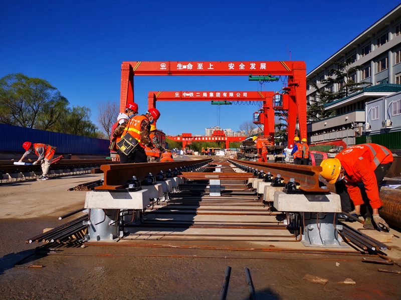 北京地鐵16號(hào)線軌道中段工程復(fù)工現(xiàn)場(chǎng)(中鐵二局新運(yùn)公司北京地鐵指揮部供圖)