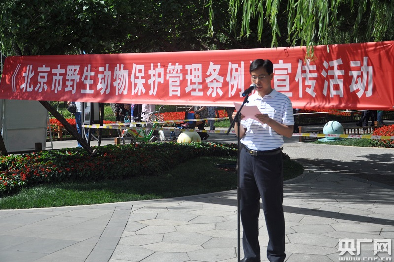 央廣網(wǎng)北京6月1日消息(記者王子衿)《北京市野生動(dòng)物保護(hù)管理?xiàng)l例》(以下簡(jiǎn)稱《條例》)6月1日正式實(shí)施。1日上午,北京市園林綠化局在通州區(qū)大運(yùn)河森林公園舉辦了《條例》正式實(shí)施宣傳活動(dòng)。圖為宣傳活動(dòng)現(xiàn)場(chǎng)(央廣網(wǎng)記者 王子衿 攝)