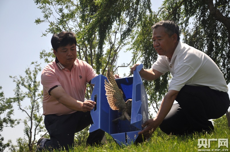 活動(dòng)現(xiàn)場(chǎng),經(jīng)過(guò)救護(hù)康復(fù)的11只國(guó)家二級(jí)保護(hù)動(dòng)物被北京市野生動(dòng)物救護(hù)中心放歸自然。圖為國(guó)家二級(jí)保護(hù)動(dòng)物被放歸自然(央廣網(wǎng)記者 王子衿 攝)