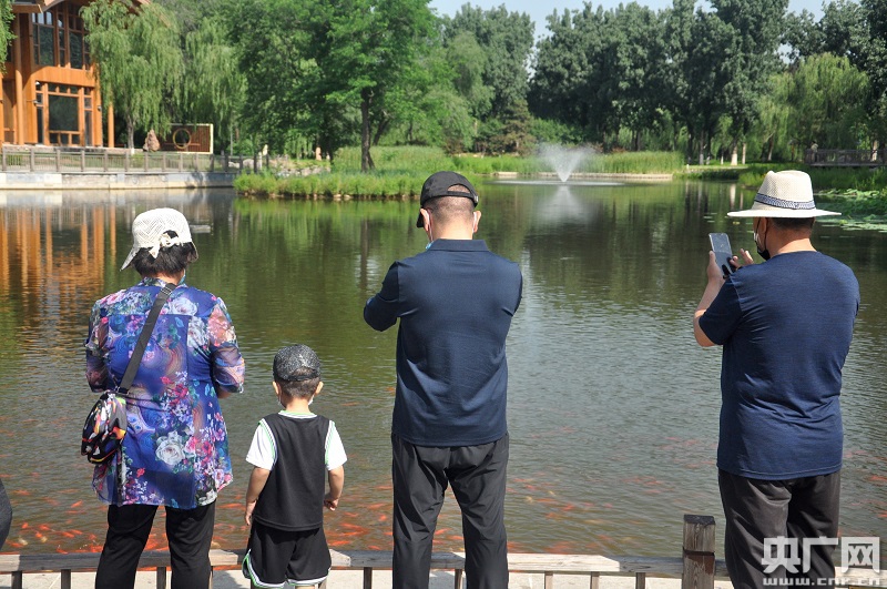 野生動(dòng)物種類(lèi)和數(shù)量持續(xù)增加,也為周邊居民提供了更宜居的生活環(huán)境。圖為周邊居民在大運(yùn)河森林公園內(nèi)游覽拍照(央廣網(wǎng)記者 王子衿 攝)