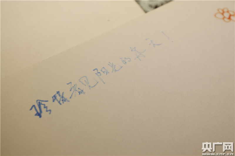讓不少人印象深刻的,是一對母子留下的繪畫留言。剛上小學(xué)一年級(jí)的女兒說:“媽媽,好黑呀!”媽媽安慰她道:“寶貝,要堅(jiān)持!”旁白寫下一句“黑暗的盡頭是光明!”
