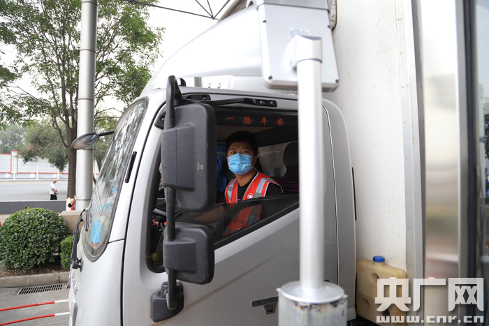 準(zhǔn)備進(jìn)入新發(fā)地市場(chǎng)的貨車司機(jī)正在進(jìn)行體溫監(jiān)測(cè)(央廣網(wǎng)記者 張佳琪攝)
