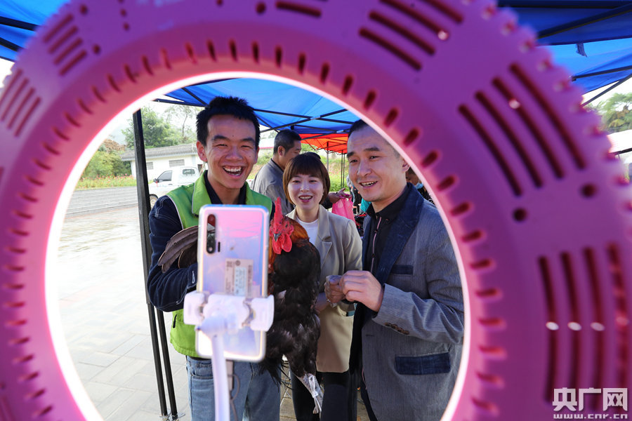 央廣網(wǎng)隴南9月26日消息(記者韓靖) 9月25日,一場(chǎng)直播帶貨活動(dòng)在甘肅隴南成縣陳家大莊村文化廣場(chǎng)進(jìn)行,隴小南網(wǎng)貨供應(yīng)中心副經(jīng)理李林萍和同事一起在電商平臺(tái)上銷售農(nóng)戶養(yǎng)殖的土雞。在半個(gè)小時(shí)的直播過程中,共賣出117只土雞,最高在線人數(shù)4029人。