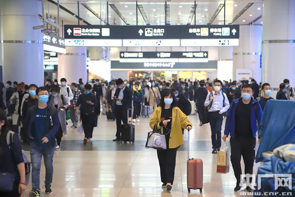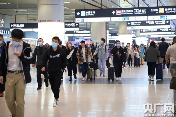8日晚間北京迎來(lái)返京旅客客流高峰(央廣網(wǎng)記者 張佳琪 攝)