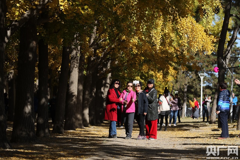 11月3日,釣魚臺銀杏大道,市民在銀杏樹下拍照留念(央廣網(wǎng)記者 韓靖 攝)